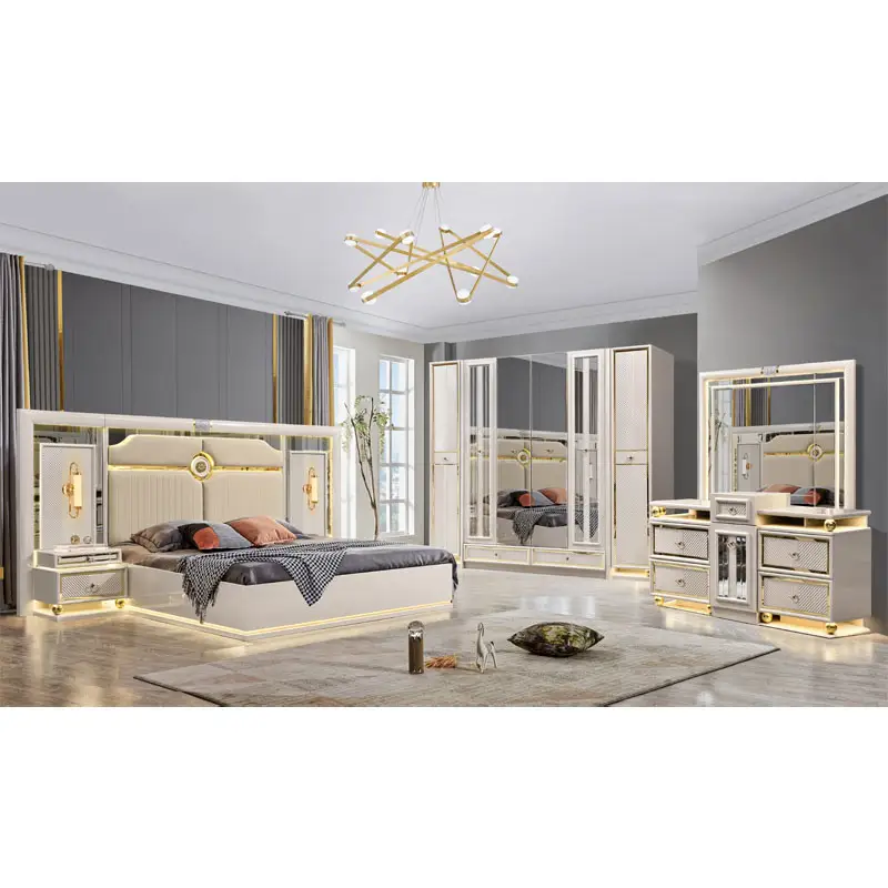 High Gloss Luxury White Wood Frame Double Bed Set King Size Full Master Room Modern Wooden Home Furniture Bedroom Sets