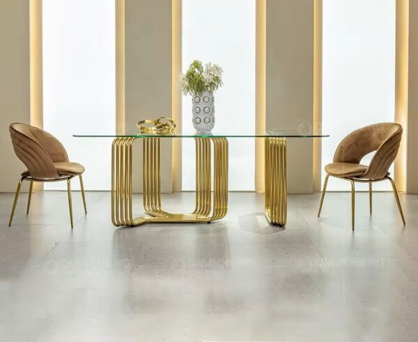 New European dinning room set luxury furniture dinner table mirror stainless 4 chairs seat dining table
