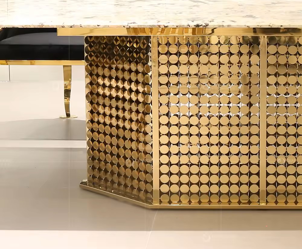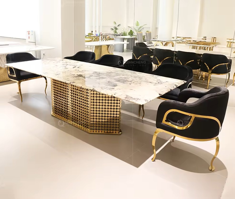 New Luxury table set for dining room stainless steel 8 10 seater marble top dining table set